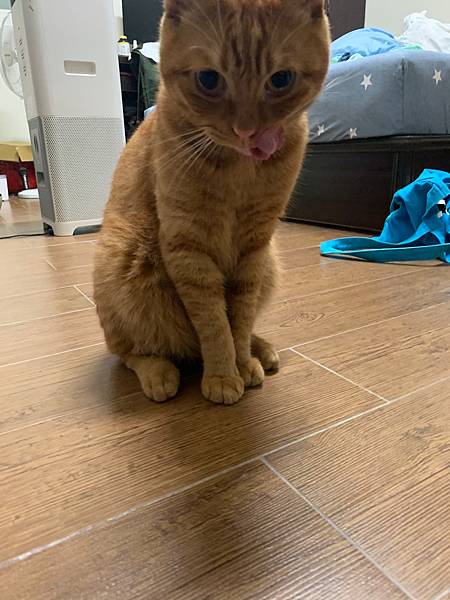 那Nemo吃完後忍不住開始舔嘴巴,清理身上的毛