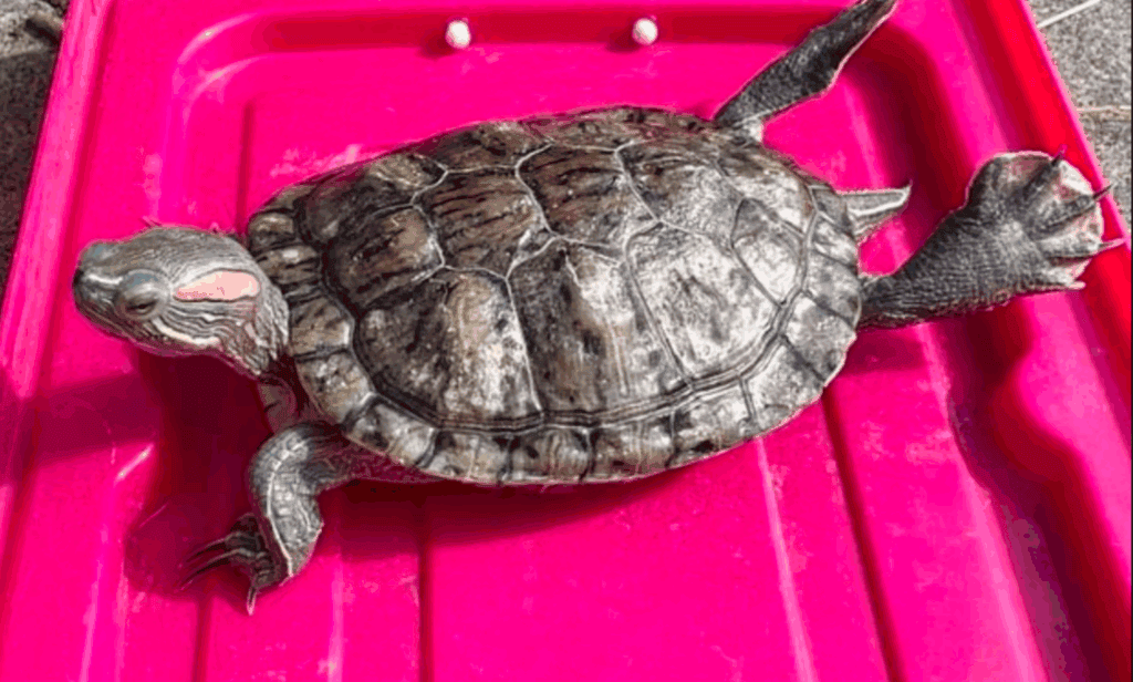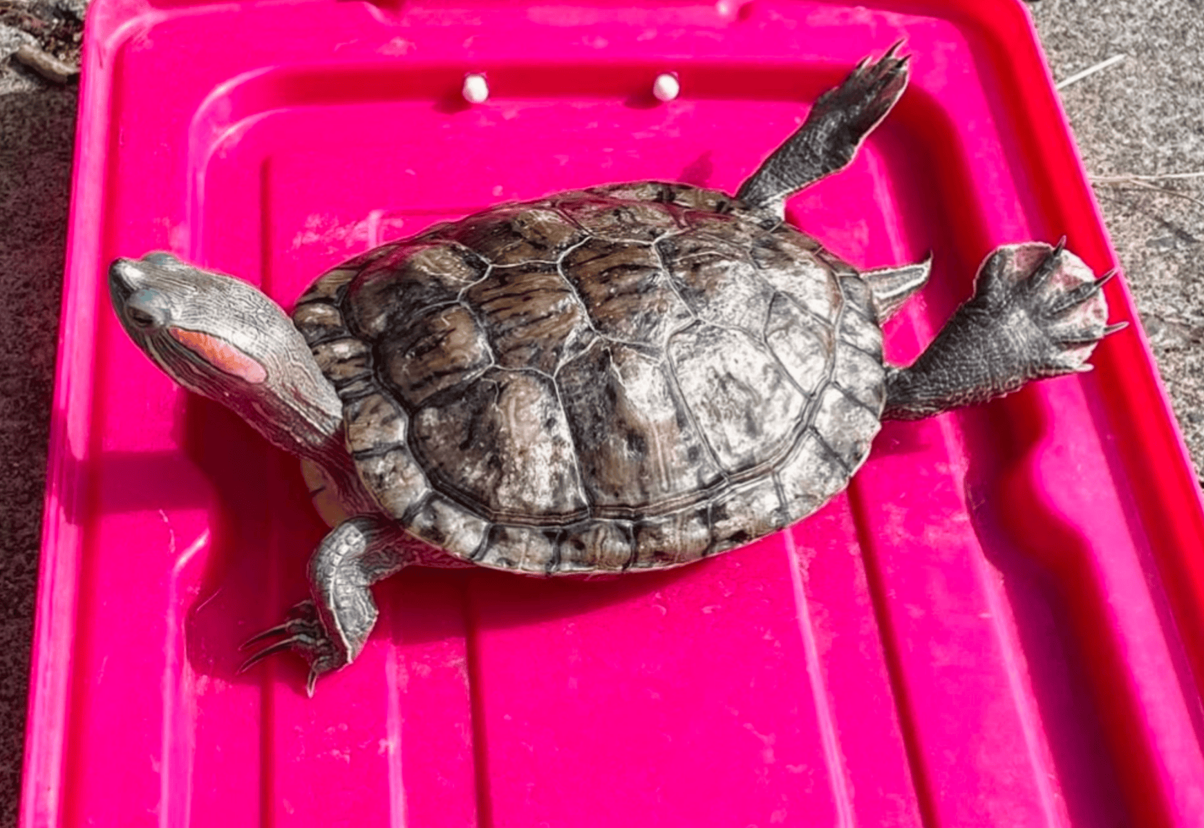 巴西龜大家也會說是紅耳龜,因為頭的兩側有很明顯的紅色條紋,他的原產地是美密西西比河及格蘭德河流,不是來自於巴西唷!