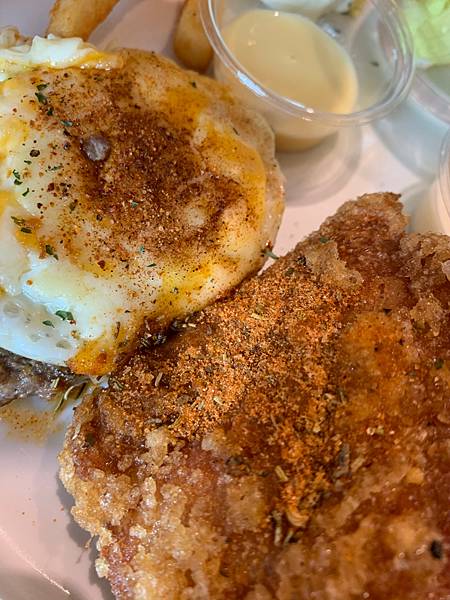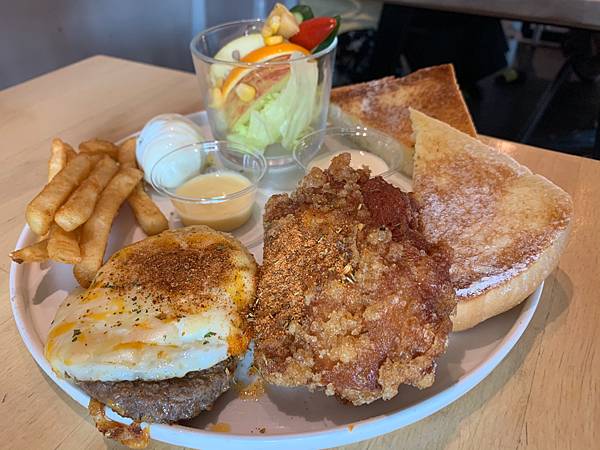 早餐乳酪牛肉漢堡排佐北非炸雞拼盤 $205