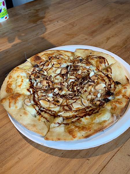 PooZ 新蘭灣柴窯披薩把香蕉巧克力搭配起司的比例混合的非常好