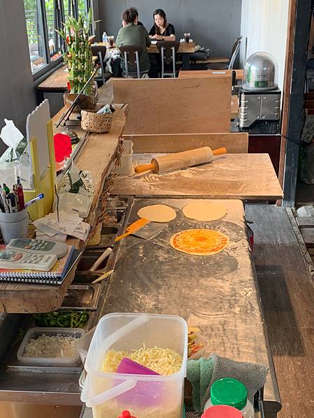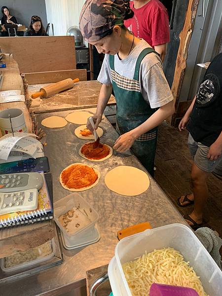 PooZ新蘭灣柴窯披薩為開放式廚房,可以看到老闆娘的製作過程