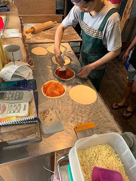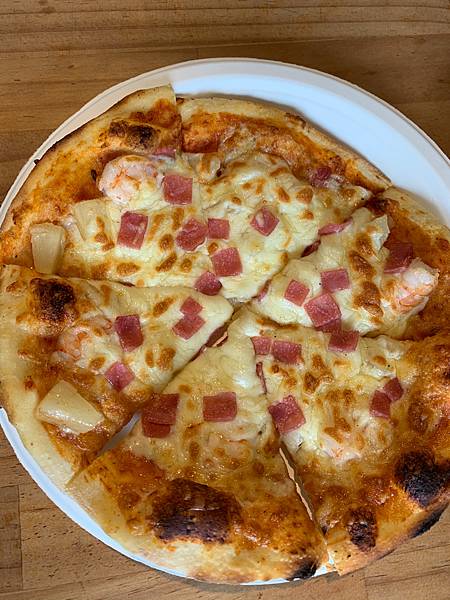 現烤披薩,熱熱的出爐,真的超級好吃,不管鹹的甜的我都很推薦