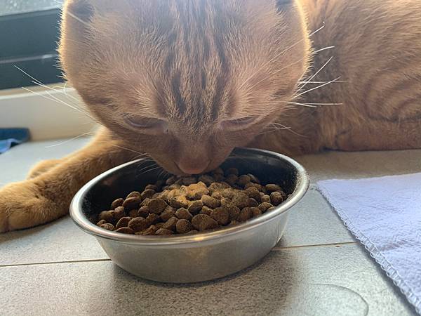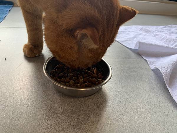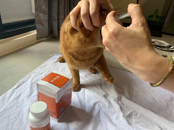 貓咪在還沒反應過來時,我們已經餵保健食品完畢了